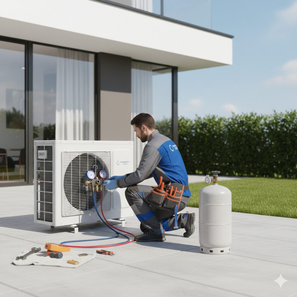 نستخدم أفضل أنواع الفريون الأمريكي لضمان برودة مثالية. نوفر فحصاً دقيقاً للمواسير وكشف التسريب بأحدث الأجهزة لضمان كفاءة التكييف في حي الخزامى بالرياض. احجز خدمتك الآن!